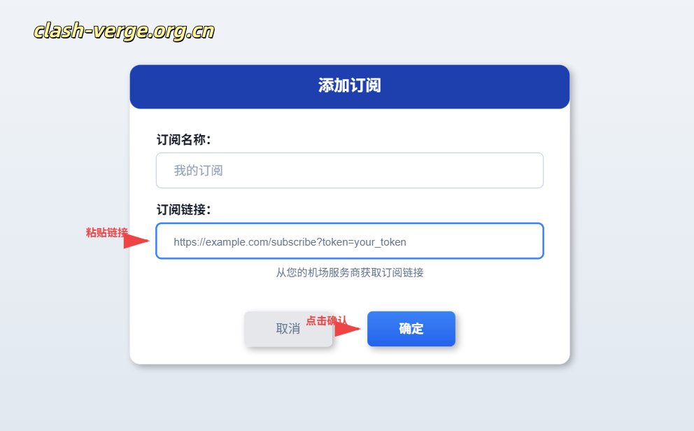 - 订阅链接:粘贴您的 Clash 订阅链接(URL)