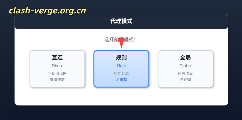 建议新手选择"规则"模式,这样可以实现智能分流,国内网站直连,国外网站走代理。